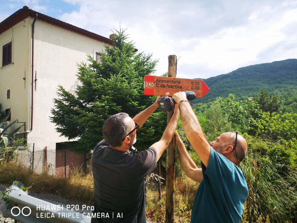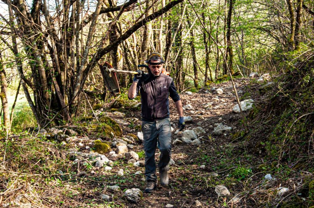 Armati di cesoie, seghe, roncole, pale, rastrelli e decespugliatori, dopo aver individuato i tracciati sulle vecchie carte, ci siamo tirati su le maniche e li abbiamo riportati in vita. Abbiamo poi contrassegnato ogni sentiero, riportandoli infine su una prima carta dei sentieri, operazione mai realizzata prima a Pizzone.